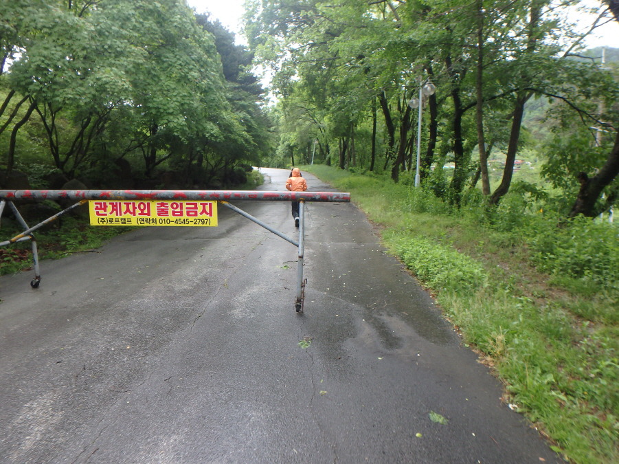 영업을 안하는지 진입도로에는 (09;36) 관계자외 출입금지 차단기 설치되어 있고 (09;38)건물은 인적이 없어 보인다. 유스호스텔 안 마당으로 들어가 우측으로 임도따라 약5m 빠져나오니 (09;40)이정표(첩푸산4.3km) 서있는 사실상 적보산 등산로다. 좌측으로 이정표 방향 따라 오른다. 등로는 양호하다.
