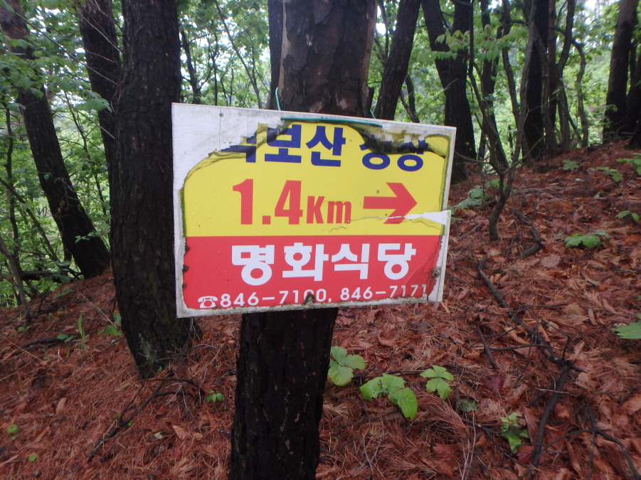 10;34 명화식당에서 새운 이정표(적보산정상1.4km)입니다.