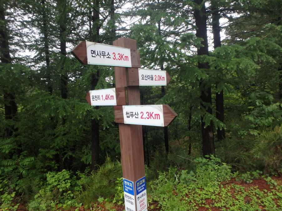 (10;58)이정표(첩푸산0.2km/상촌마을2.3km/온천리3.5km)입니다.