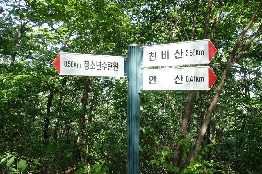 (14;57) 이정표(청소년수련원0.56km/안산0.41km/천비산3.86km)입니다.