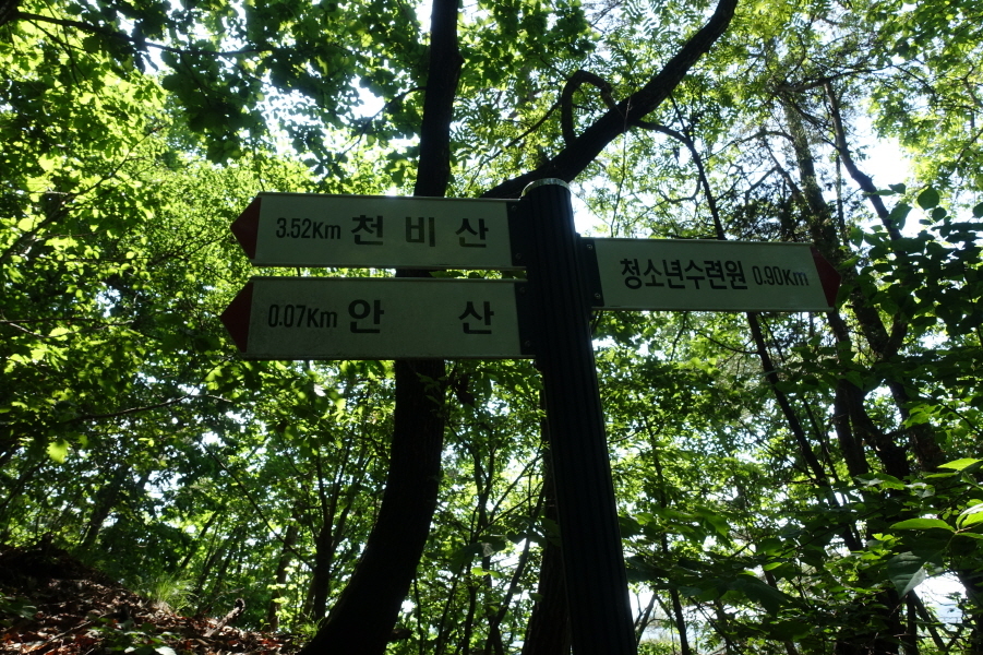 (14;51) 이정표(청소년수련원0.90km/안산0.07km/천비산3.52km)입니다.