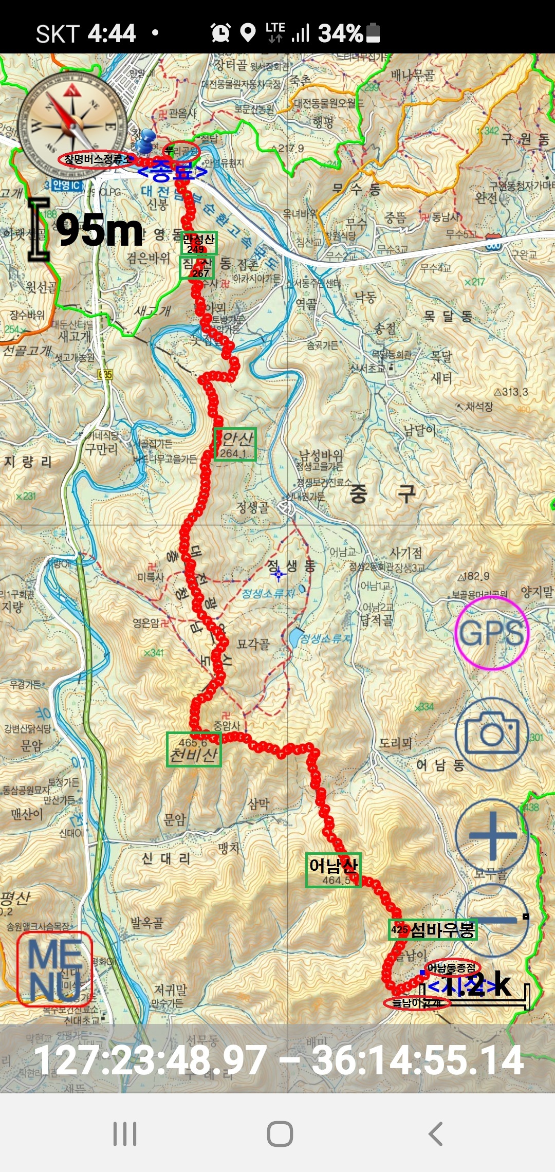 [새트렉]섬바우봉(425m).어남산(464m).천비산(466m).안산(260m).침산(267m).만성산(249m)./대전 중구, 충남 금산