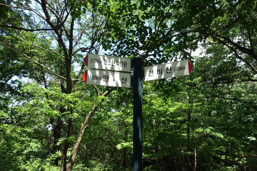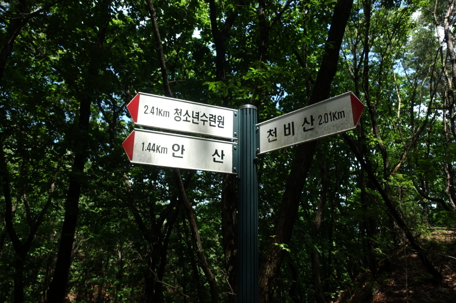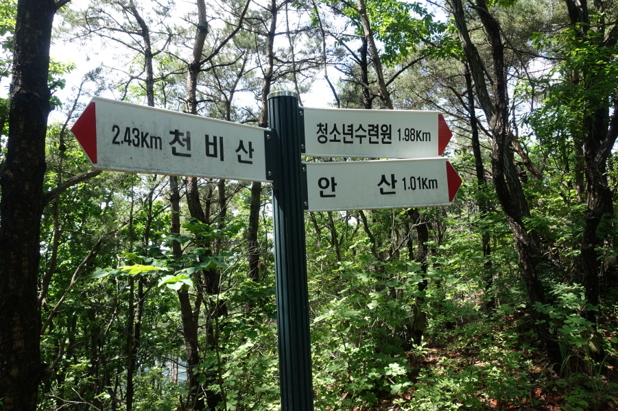 (13;39)이정표(청소년수련원1.98km/안산1.01km/천비산2.43km)입니다.
