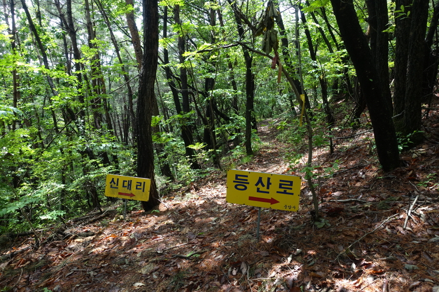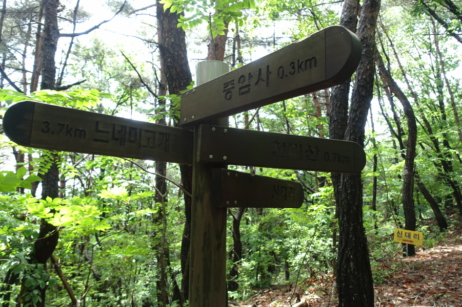 (12;30) 이정표(천비산 0.7km/중암사0.3km/신대리/느네미고개 3.7km)4거리입니다.