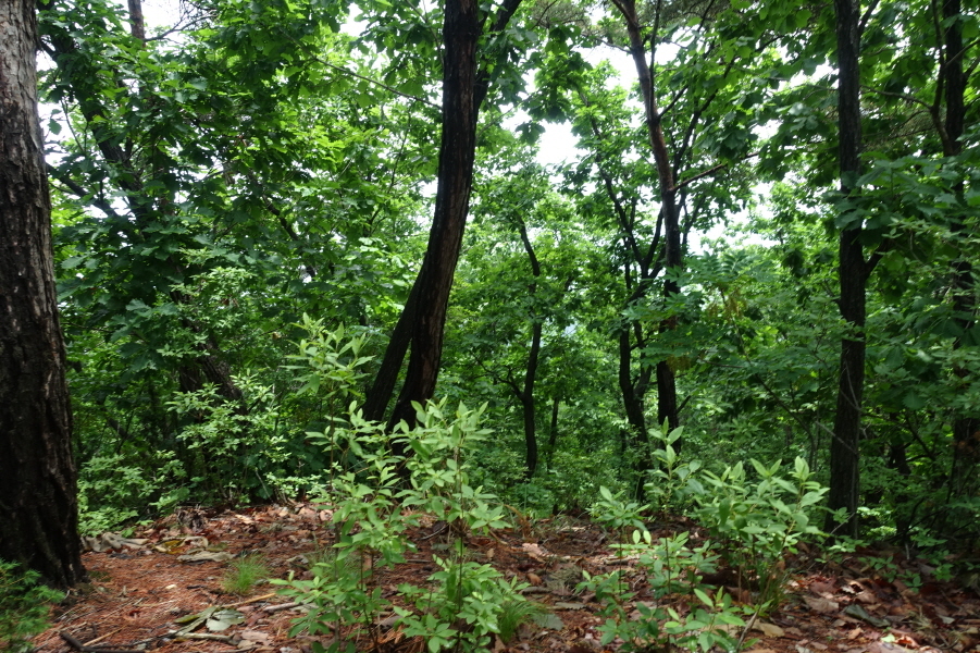 (10;55) 이정표(능선로 제3봉-제2봉/혜천대학교연수원)를 지나 완만하게 올르니 어남산 정상이다. [0.6km][18분]