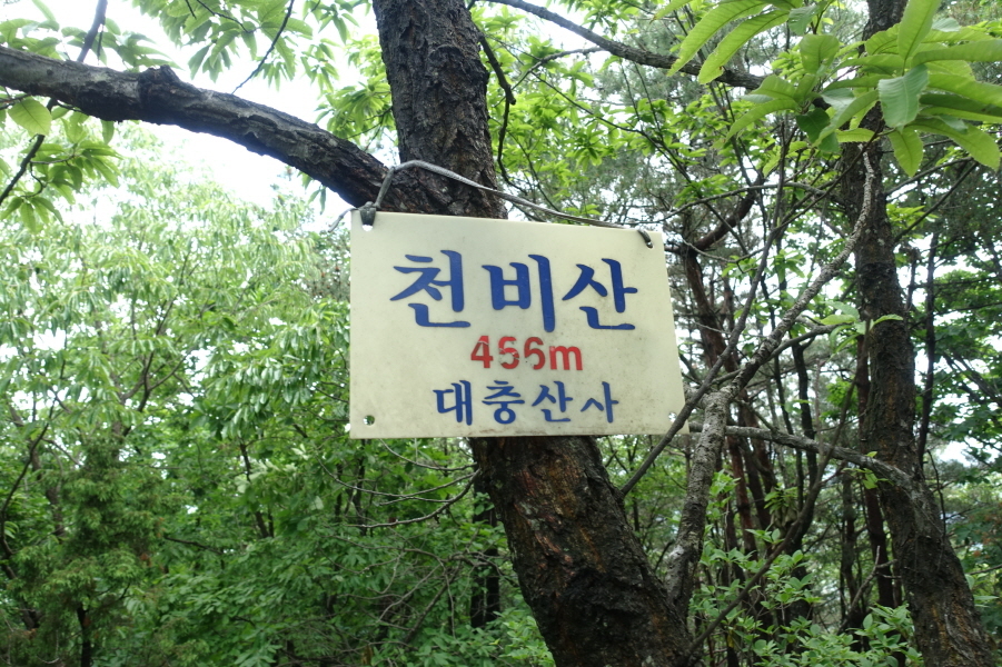 12;45~12;50[5분] 천비산 정상 대충산사님의 표지판입니다.