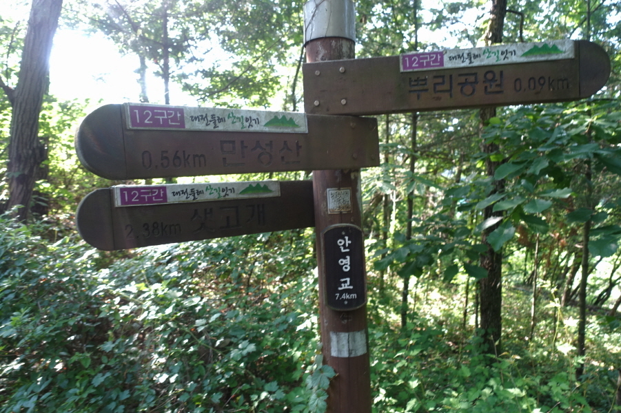(15;20)이정표(뿌리공원0.09km/샛고개2.38km/만성산0.59km)입니다.