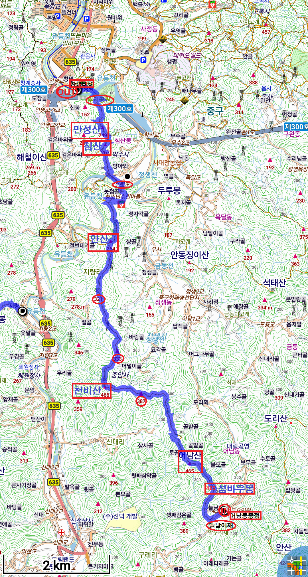 어둔산.천비산.안산.침산.만성산 트랙입니다.