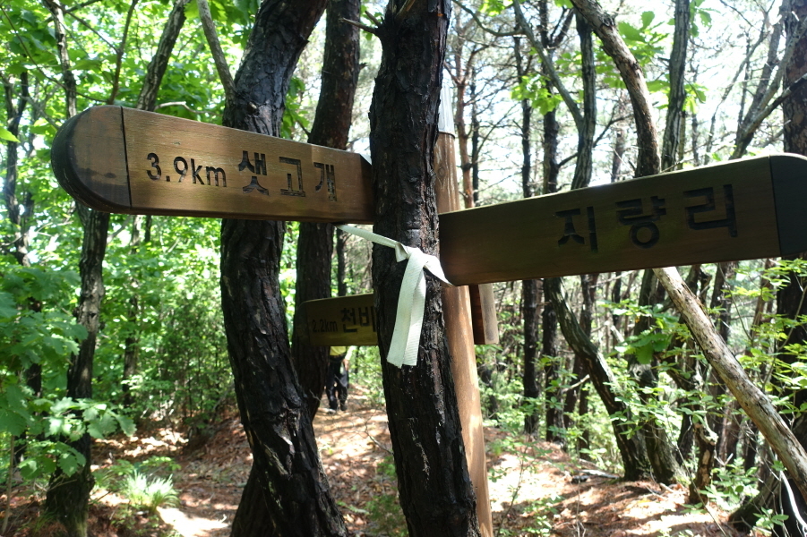 (13;34)지량리 갈림이정표(샛고개3.9km/지량리/천비산2.2km)입니다.