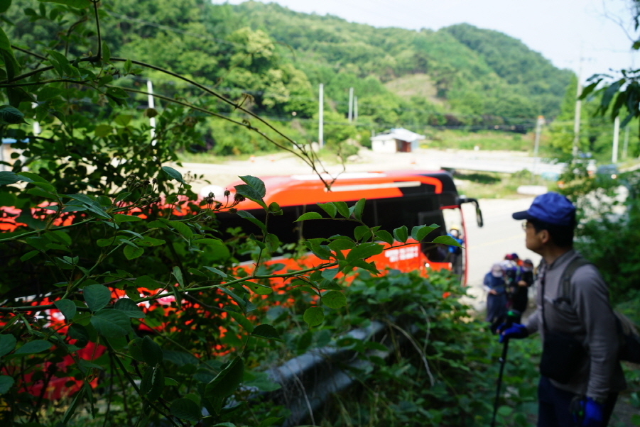 13;42 소라실 마을 정자와 산악회 버스가 보입니다. 14;45 산행종료합니다.