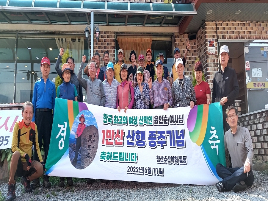 윤인순 여사님 10,000산봉 등정 단체기념사진입니다.