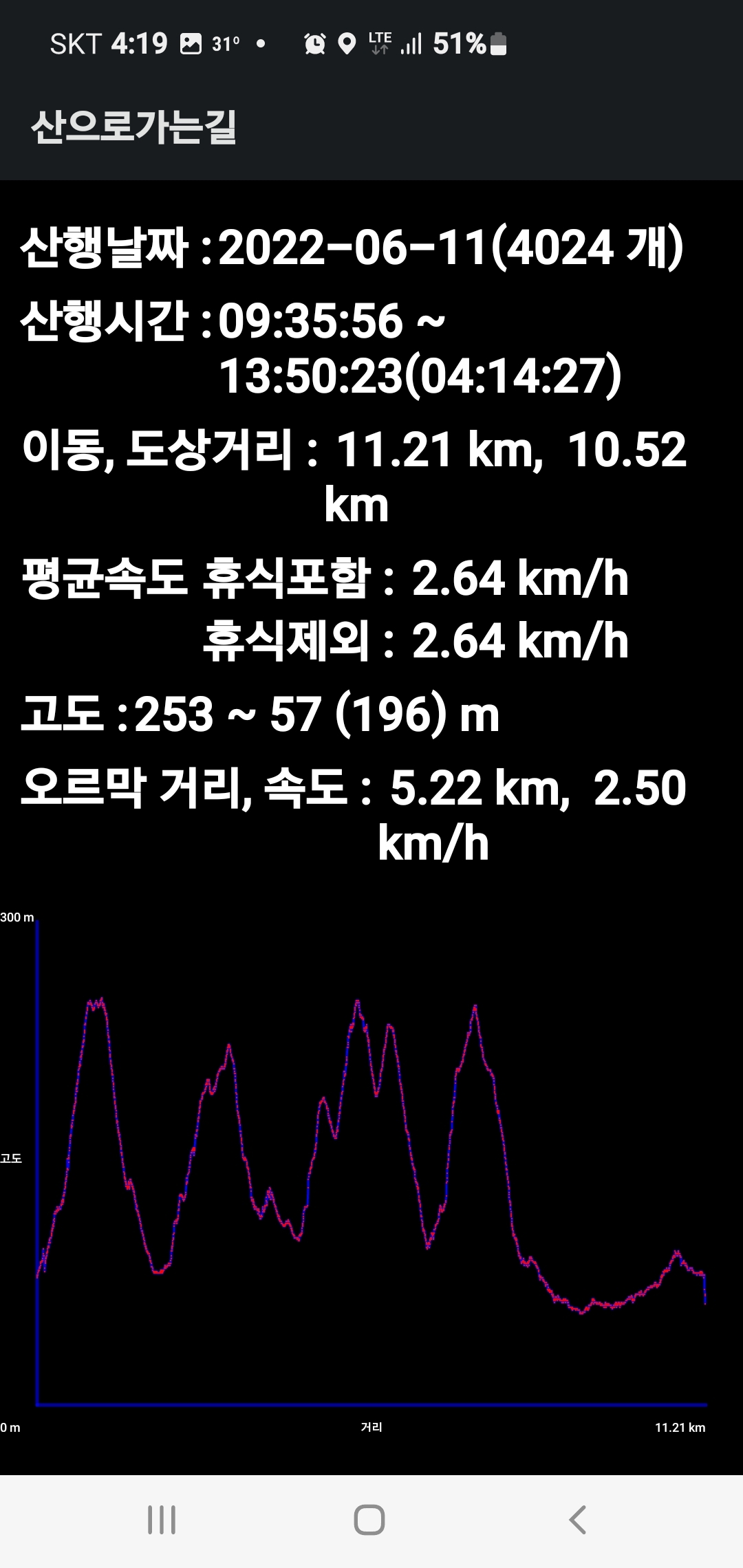 산행일자;2022년 6월11일(토). 날씨;맑음. 산행거리;10.2km. 산행시간;4시간10분.