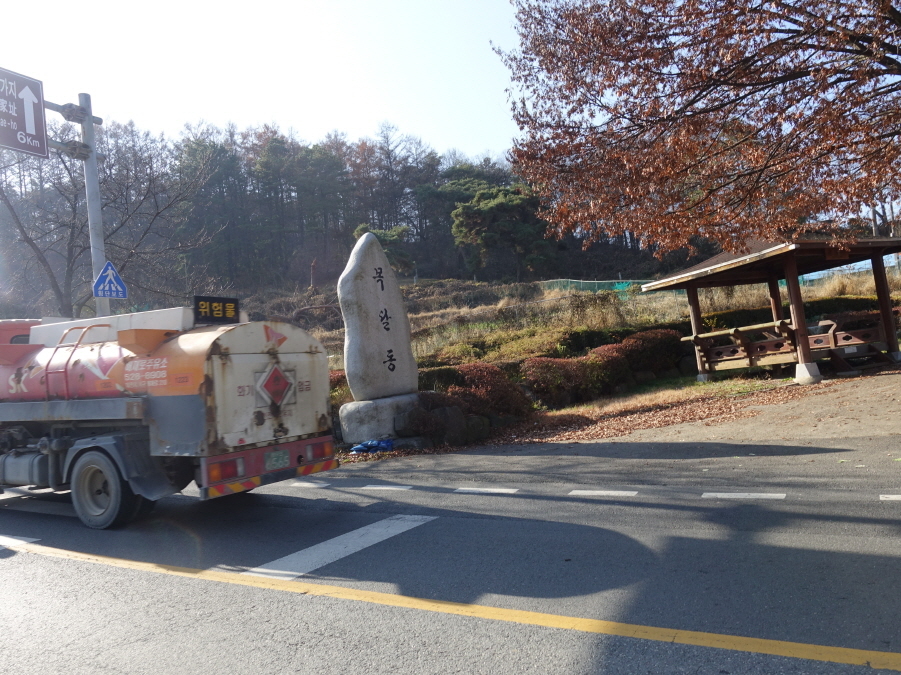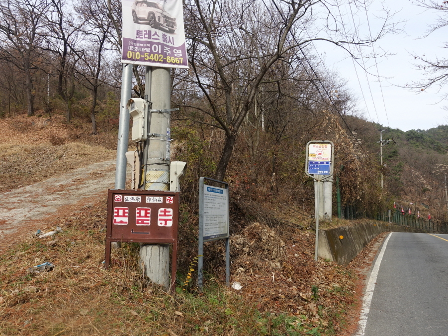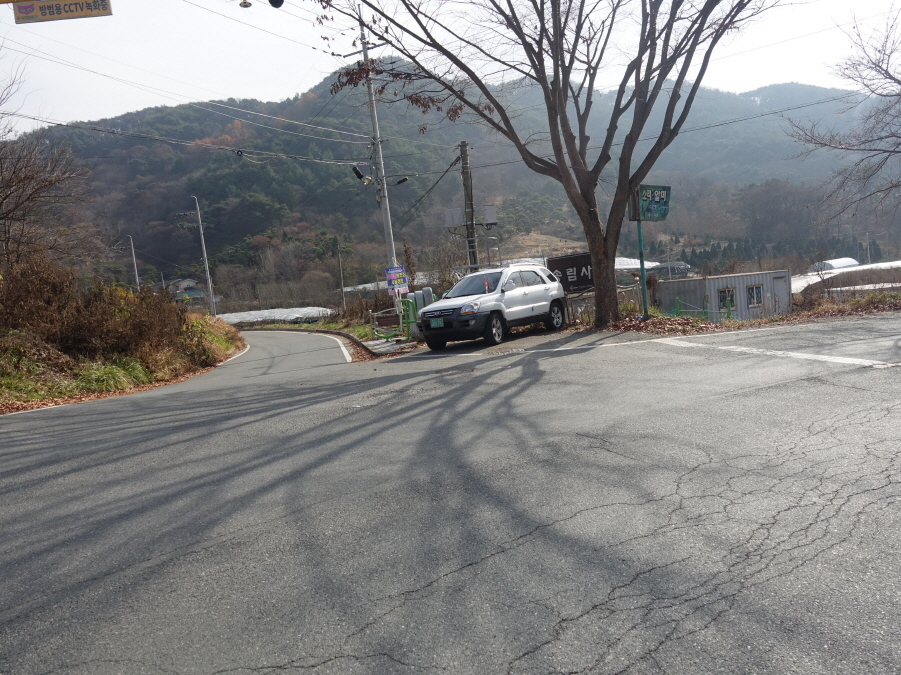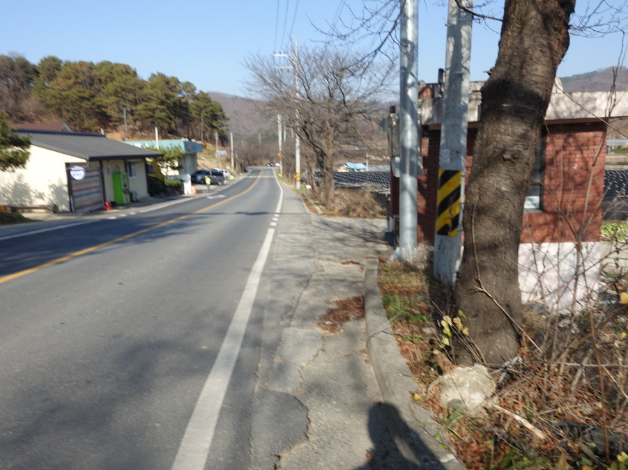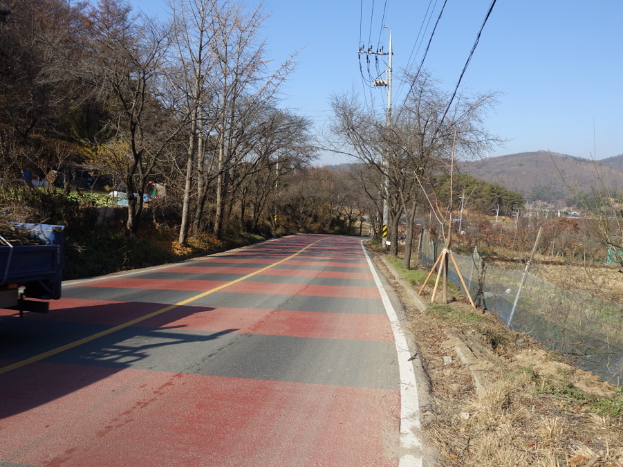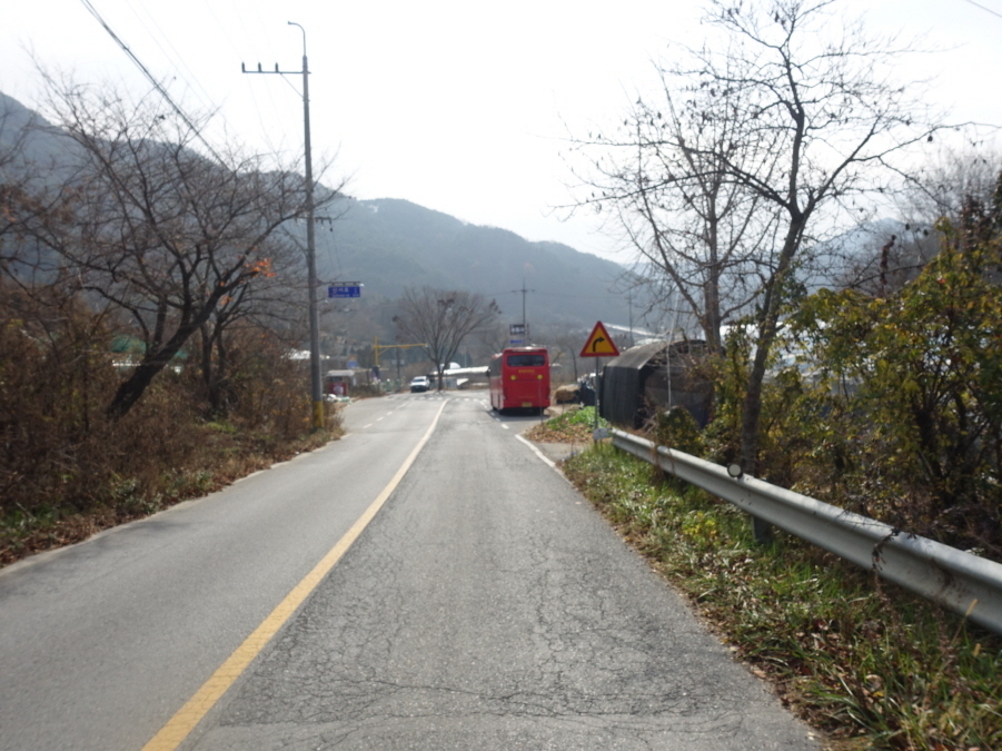 도로따라 내려서니 (11;55)공터에 산악회버스가 대기중이다. 육정섭님, 노기창님이 도착해야 떠날 버스이기에 운행 부장 장부장님께 도로를 걸어갈테니 중간에 "만나면 태워달라" 부탁하고 도로따라 부지런히 걷습니다.[1.3km][10분]