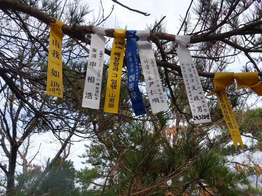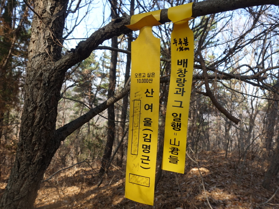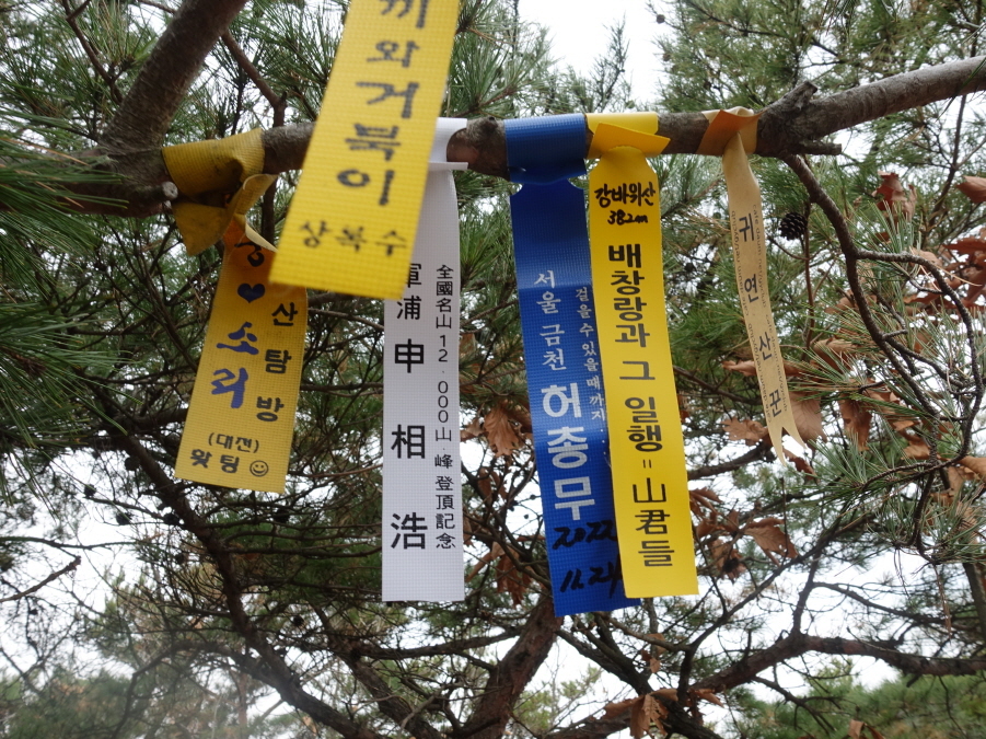 (11;00~11;01)[1분]강바위산](382m)정상 선답자님들의 표지기입니다.