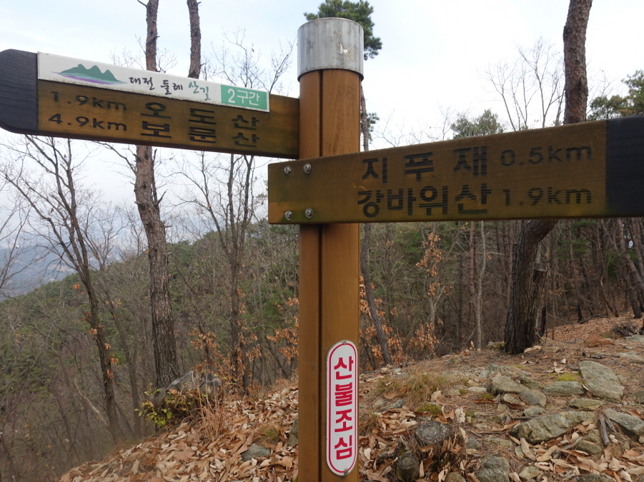 (11;35) 배벌등 이정표(오도산 1.9km, 보문산 5.1km//지프재 0.5km,강바위산1.9km)입니다.