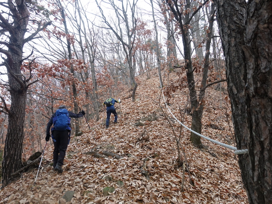 (10;14) 낙엽이 미끄러운 급경사구간을 나무와 픽스로프 붙잡고 올라 (10;20) 마분산 정상에 선다.[1.5km][30분]