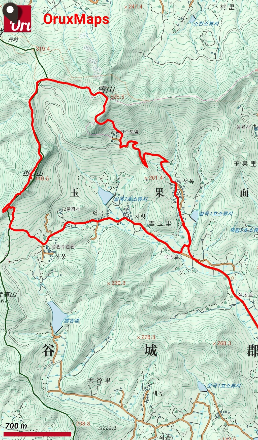 3. 산행코스 : 주차장-수도암-설산-금샘-괘일산-성림수련원-설옥관광농원-주차장