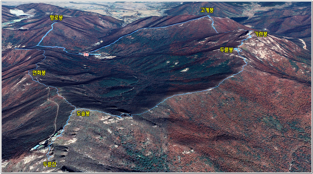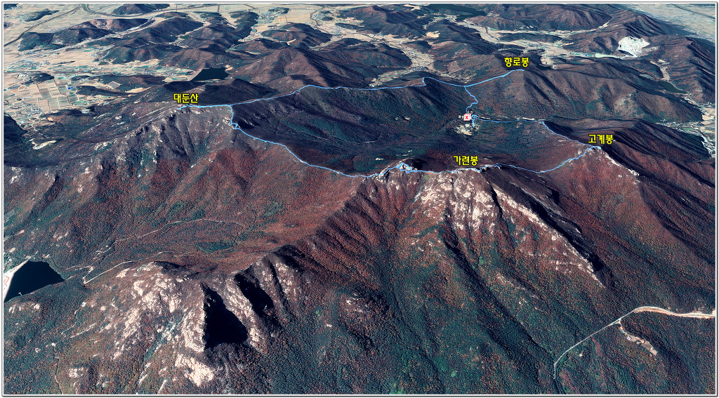 ◈고계봉과 도솔봉 그리고 대둔산 및 선은지맥 마루금상의 연화봉 혈망봉 향로봉은 모두 처음으로 밟아보는 봉우리. | |||