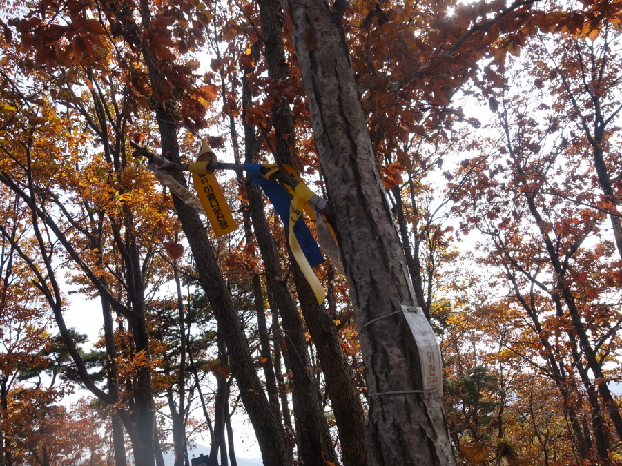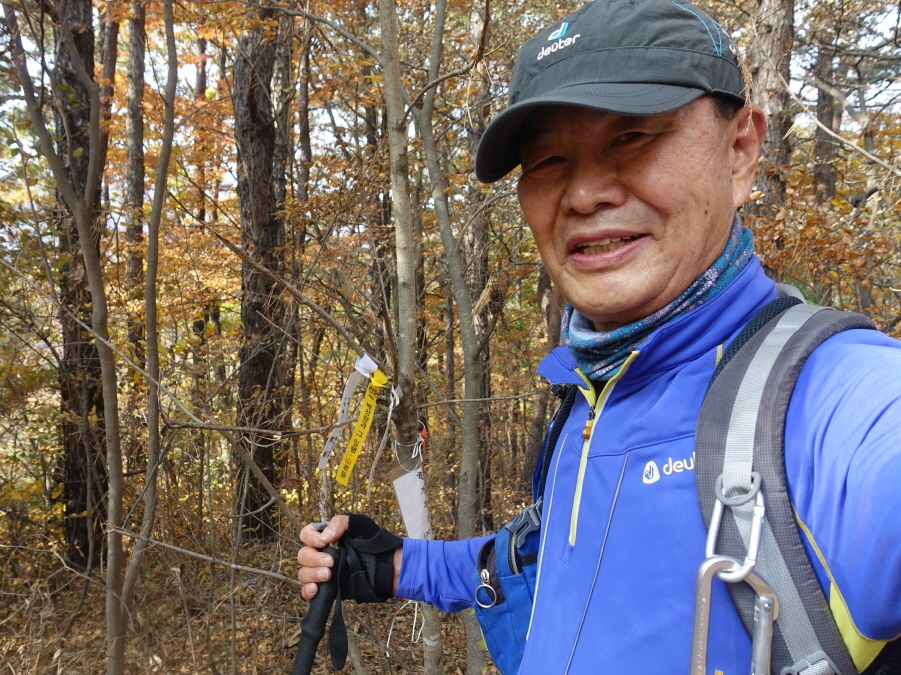 선답자님들의 표지기옆에 표지기걸고 인증사진 남기고 서둘러Back한다.[0.4km][4분]
