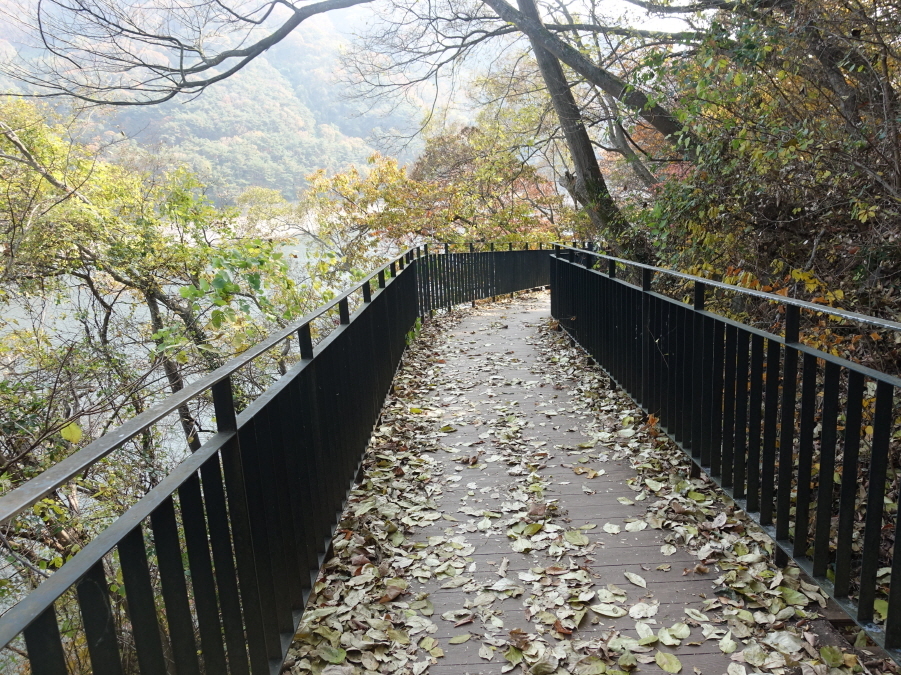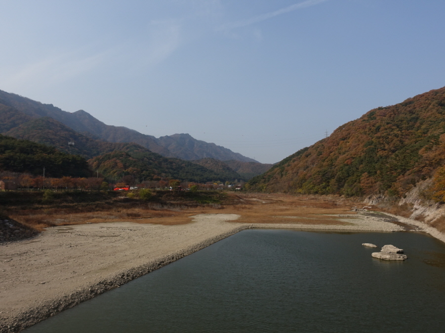 13;58 목교에서 담양호를 담아봅니다. 주차장 산악회버스가 보입니다.