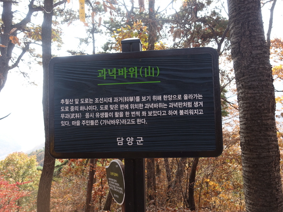 ■과녁바위산(371m)은 전라남도 담양군 용면 월계리에 소재한 산이다. 추월산 앞 도로는 조선시대 과거를 보기 위해 한양으로 올라가는 도로 중의 하나이다. 도로 맞은편에 위치한 과녁바위는 과녁판처럼 생겨 무과 응시 유생들이 활을 한 번씩 쏴 보았다고 하여 불리고 있다. 마을 주민들은 "가낙바위"라고도 한다.
