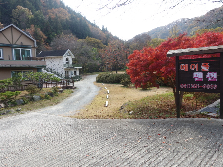 11;48 중산 들머리 메이플 펜션 우측길을 따릅니다.