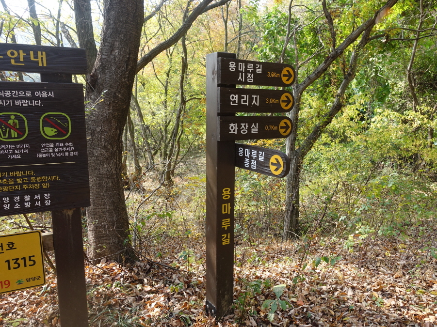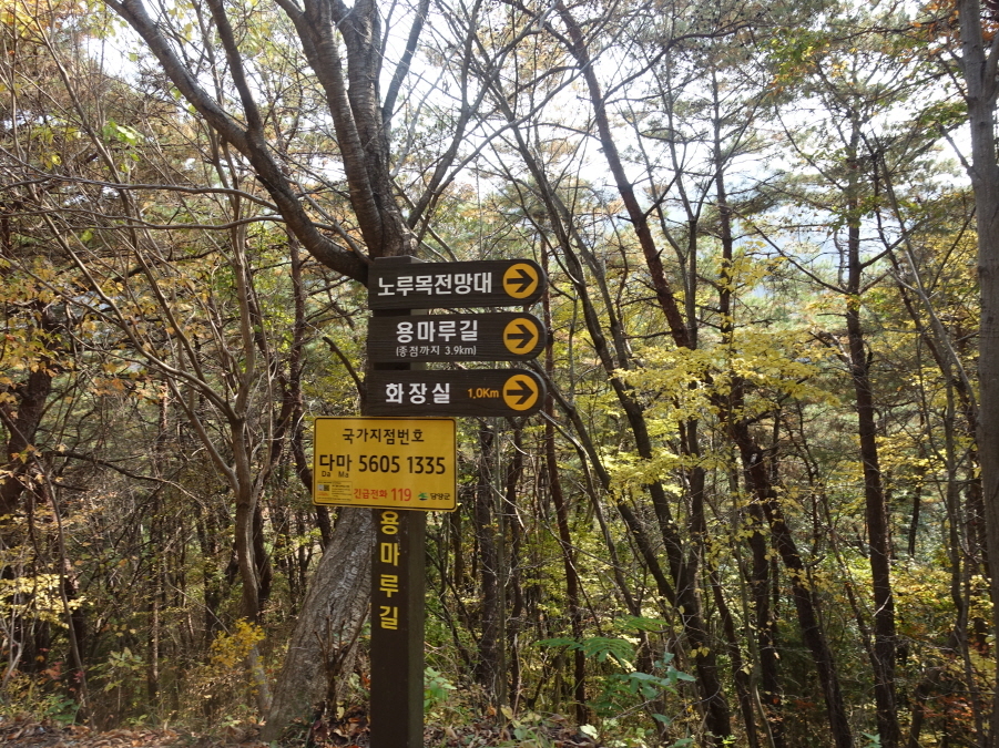 (13;36) 이정표(용마루길 시점2.7km/전망대2.5km/화장실0.2km/용마루길 종점1.2km) 입니다.