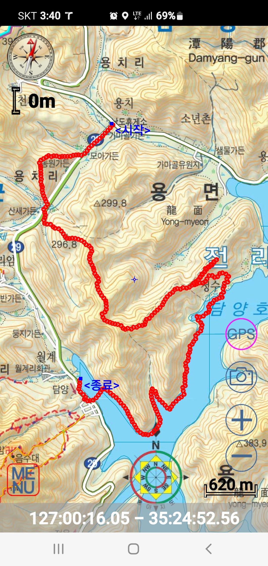 13;58 목교에서 담양호를 담아봅니다. 13;08 주차장에서 산행종료합니다.