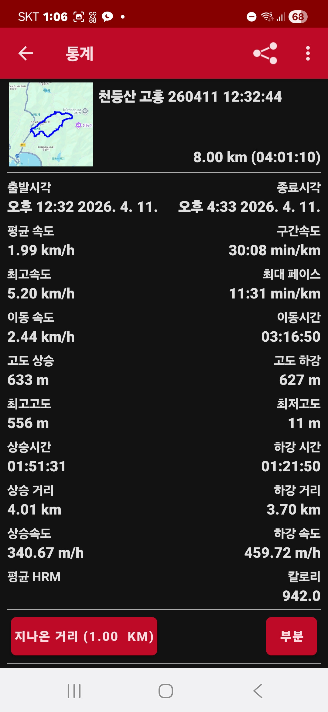 ◈ 거리 및 시간: 8.00km/4시간 00분