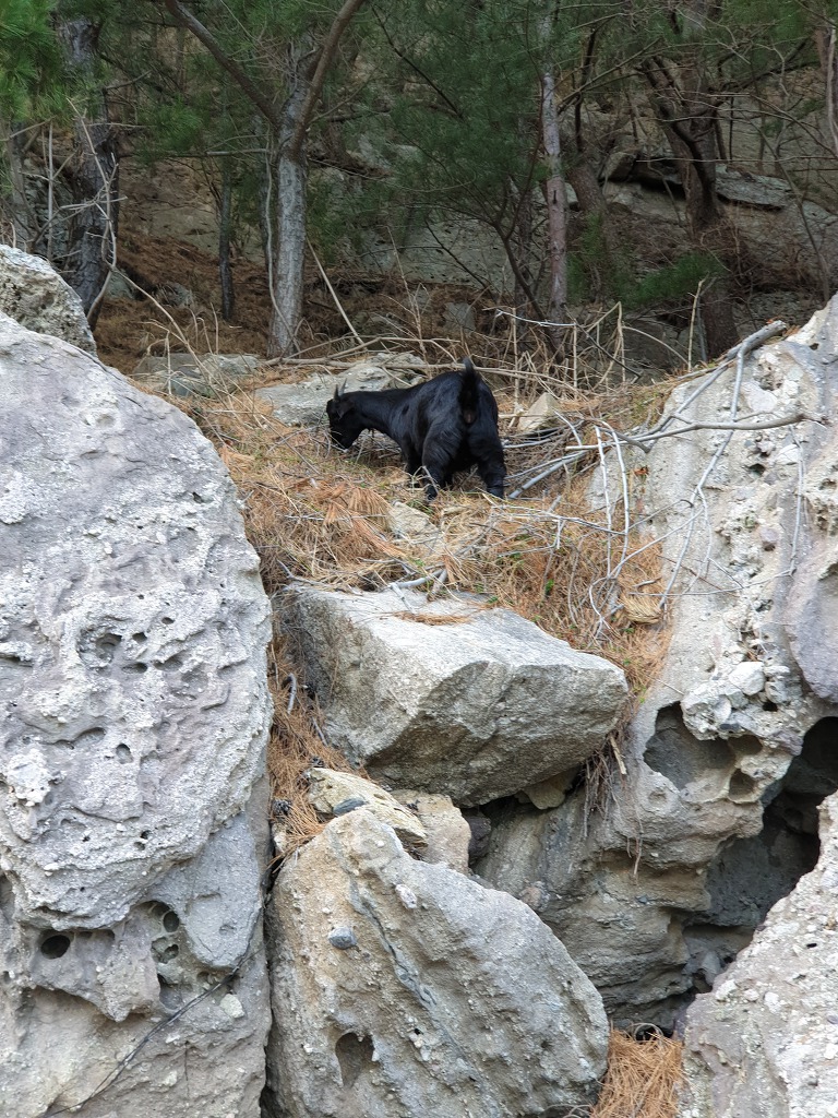 방목된 염소와 침식된 바위