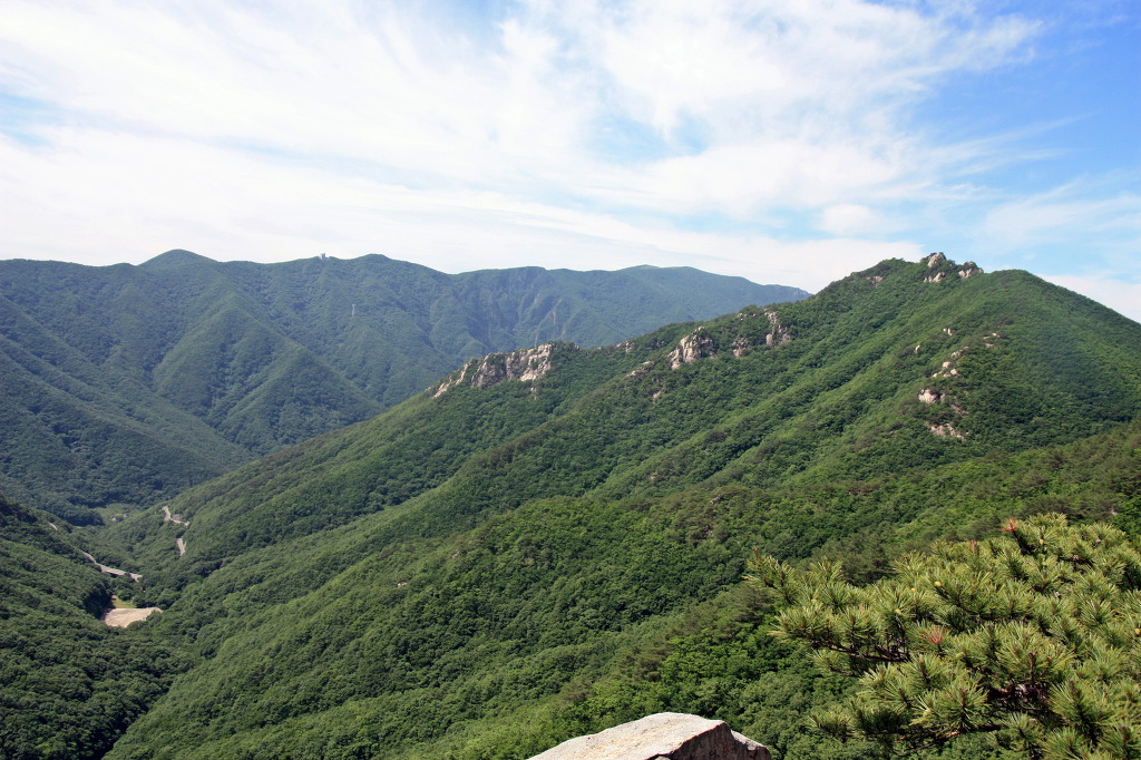 ▼베틀바위에서 백운산 조망(우측 암릉봉우리)