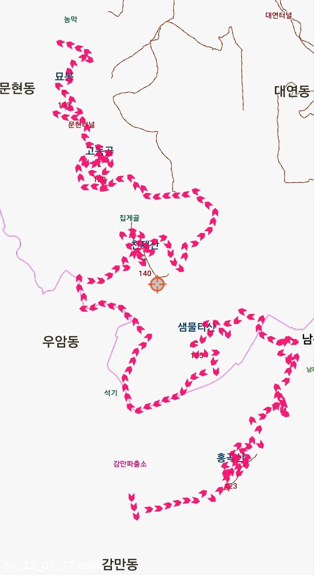 -옛 골의 지명이 고동골이었던 듯 고동골의 산 마루인 셈.