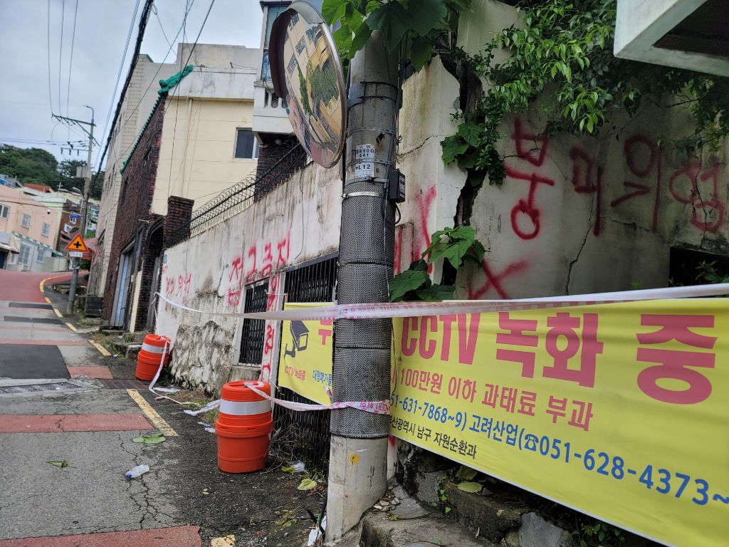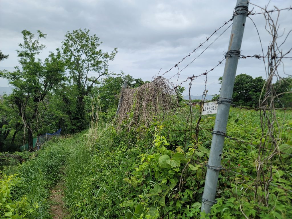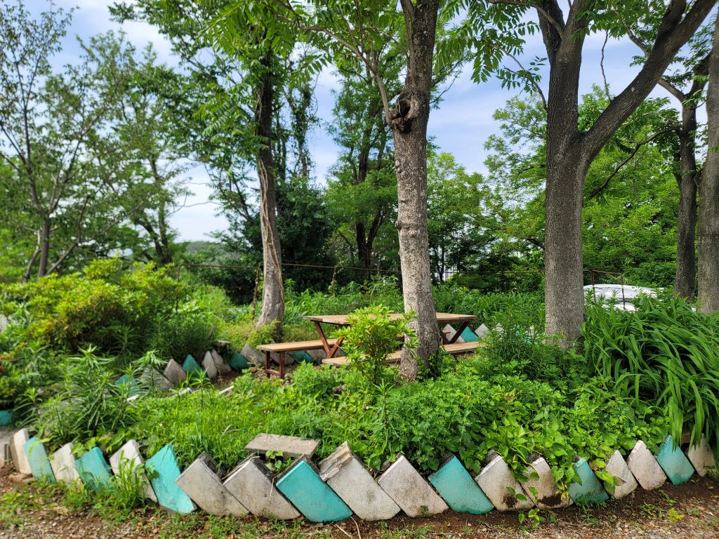-마루는 사유지인지 온갖 부산물이 널브러져 있고 노 가중나무가 그늘을 드리우고 있다.