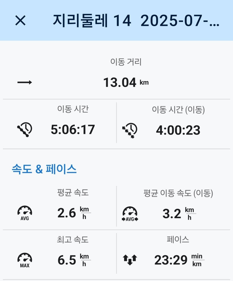 지리산둘레길 13코스-(대축-대촌-윗재-신선대 구름다리 왕복-원부춘)-250705 작성자오지리(경북 구미)|작성시간25.11.28|조회수92 목록 댓글 2 글자크기 작게가 글자크기 크게가 지리둘레_14_2025-07-05_10-57-수정-1.gpx811.75KB 첨부파일첨부된 파일이 5개 있습니다. jpg 파일 지리_14-2.jpg 다운로드 jpg 파일 사용자_지정_1.jpg 다운로드 jpg 파일 tempFileForShare_20250705-224656.jpg 다운로드 etc 파일 DSC06003.JPG 다운로드 etc 파일 지리둘레_14_2025-07-05_10-57-수정-1.gpx 다운로드 다음검색 현재 게시글 추가 기능 열기 북마크 신고 센터로 신고 댓글 댓글 2 댓글쓰기 답글쓰기 댓글 리스트 작성자푸르네(경북 포항) | 작성시간 25.11.29 이제 둘레길을 하나씩 정복해 나가실려나 봅니다.ㅎ수고하셨습니다. 작성자산아희(서울 관악) | 작성시간 25.12.01 수고하셨습니다~ 댓글 전체보기