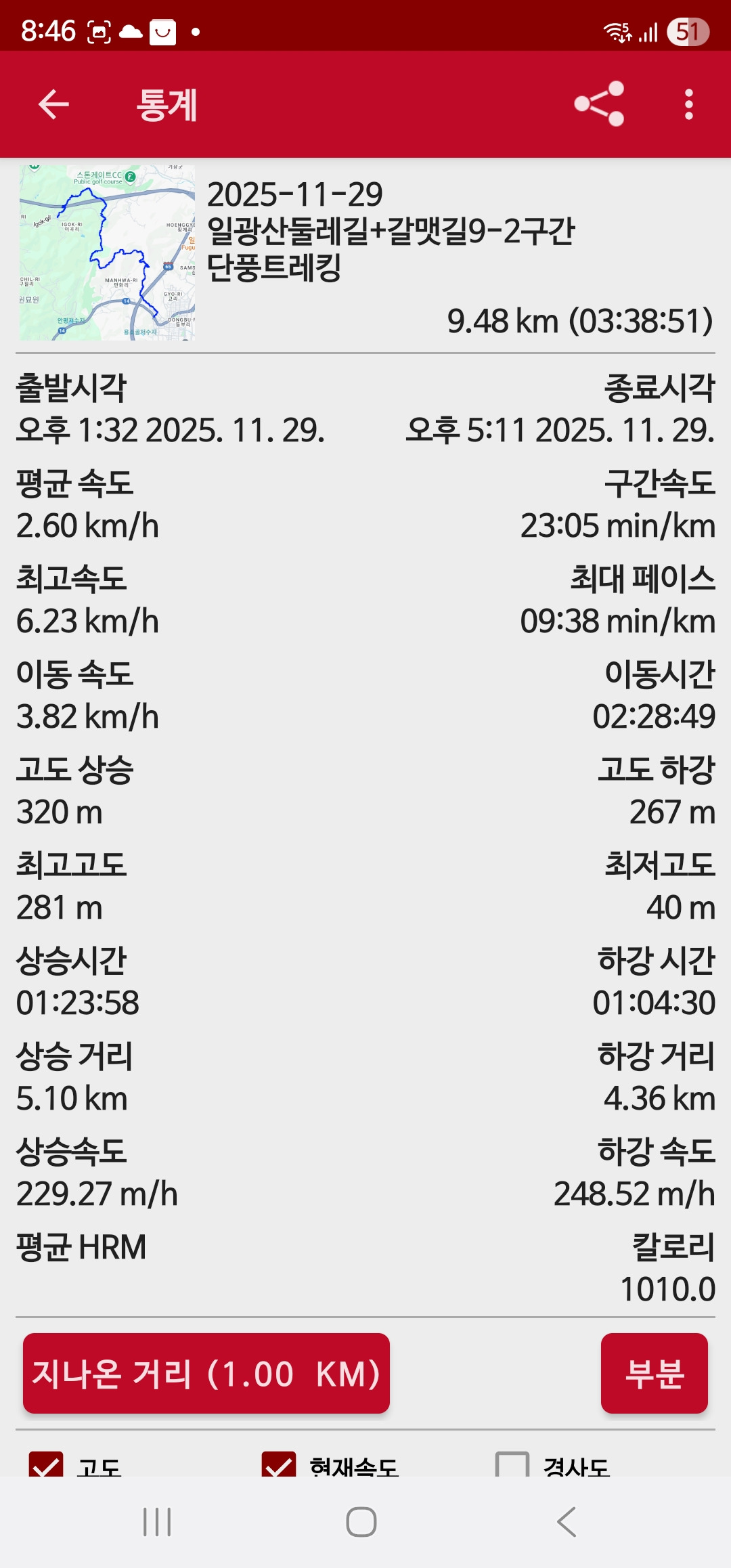 4. 산행거리 : 9.48km