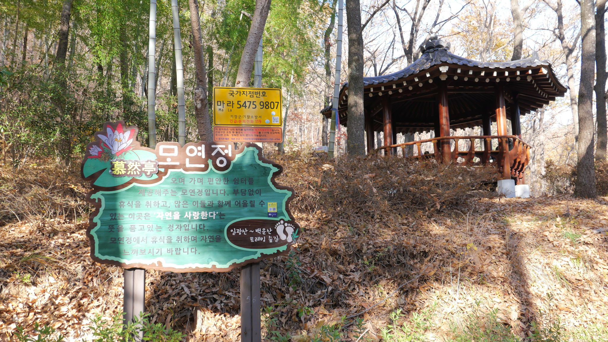 (이진아파트-두화마을(테마임도)-만화정-아침햇살정원숲쉼터-모연정-정자.연못-편백나무숲-곡천고가교-이곡마을정류장)