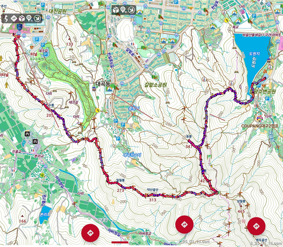 ◈ 코스: 대구지방합동청사-천수봉-일필봉-약산골산-이필봉(담봉)-송봉 전망대-월광수변공원