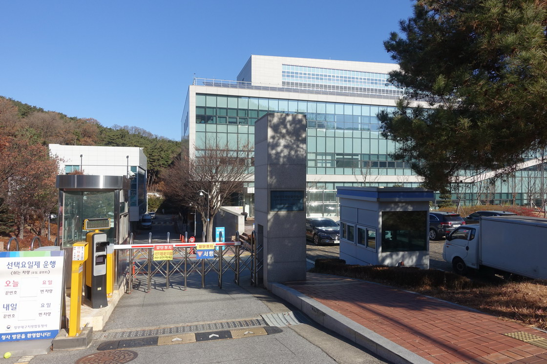 정부대구지방 합동청사 앞에서 횡단보도를 건너며 산행 시작