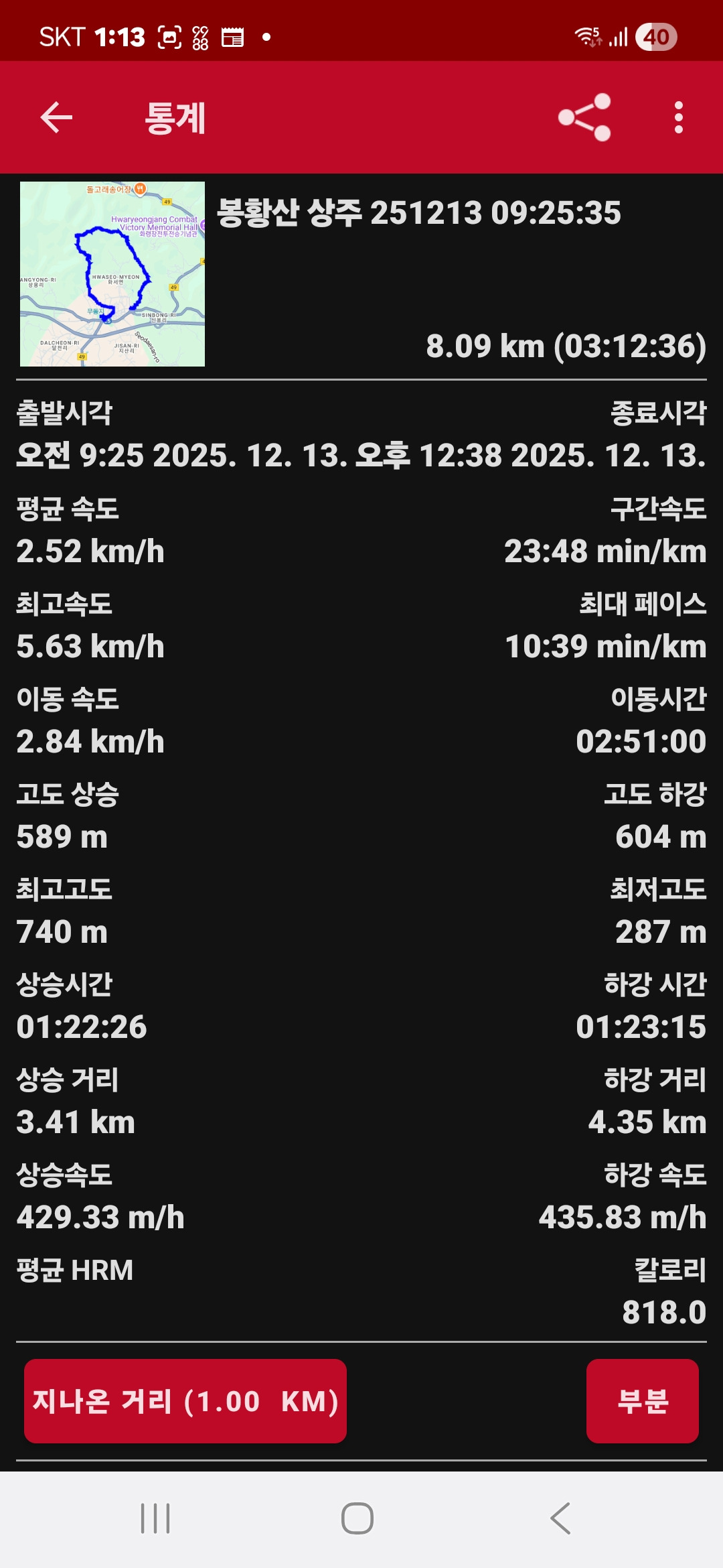 ◈ 거리 및 시간:8.09km/3시간 12분
