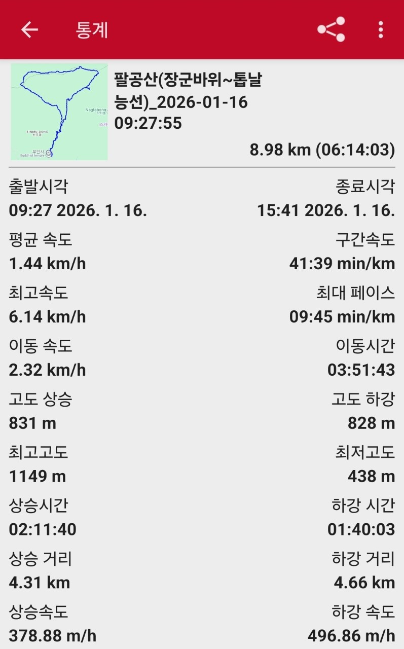 팔공산(부인사~장군바위~서봉~톱날능선~마당재~부인사) 작성자푸르네(경북 포항)|작성시간26.01.19|조회수140 목록 댓글 2 글자크기 작게가 글자크기 크게가 팔공산(장군바위~톱날능선)_2026-01-16 092755__20260116_0927.gpx90.58KB 첨부파일첨부된 파일이 7개 있습니다. jpg 파일 BandPhoto_2026_01_19_10_50_56.jpg 다운로드 jpg 파일 BandPhoto_2026_01_19_10_50_51.jpg 다운로드 jpg 파일 BandPhoto_2026_01_19_10_51_35.jpg 다운로드 jpg 파일 BandPhoto_2026_01_19_10_51_19.jpg 다운로드 jpg 파일 BandPhoto_2026_01_19_10_51_49.jpg 다운로드 jpg 파일 BandPhoto_2026_01_19_10_52_05.jpg 다운로드 etc 파일 팔공산(장군바위~톱날능선)_2026-01-16 092755__20260116_0927.gpx 다운로드 다음검색 현재 게시글 추가 기능 열기 북마크 신고 센터로 신고 댓글 댓글 2 댓글쓰기 답글쓰기 댓글 리스트 작성자산아희(서울 관악) | 작성시간 26.01.19 수고하셨습니다~ 답댓글 작성자푸르네(경북 포항) 작성자 본인 여부 작성자 | 작성시간 26.01.20 감사합니다. 안전산행 되십시요. 댓글 전체보기