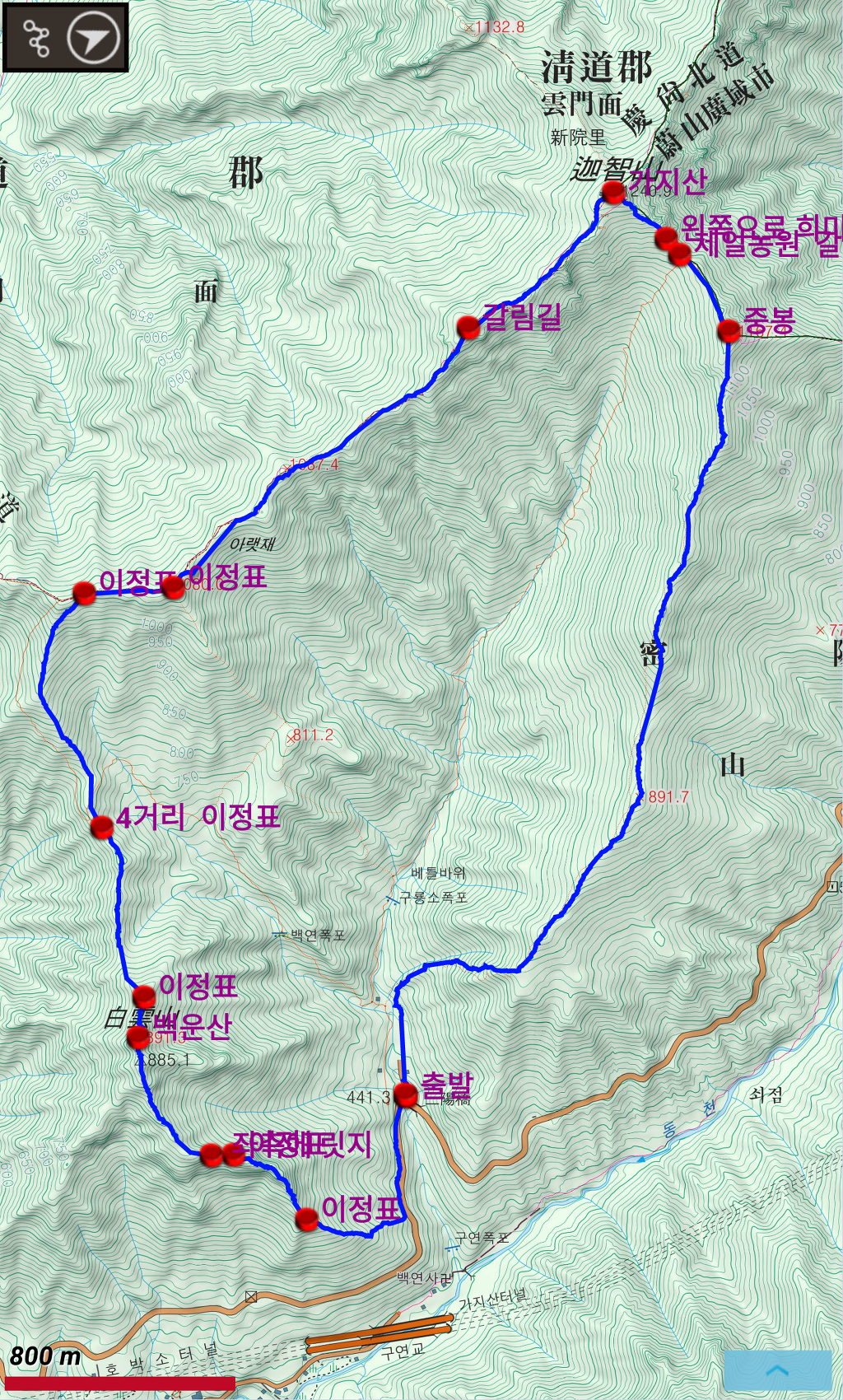 3. 산행코스 : 삼양교-백운산-가지산-중봉-삼양교
