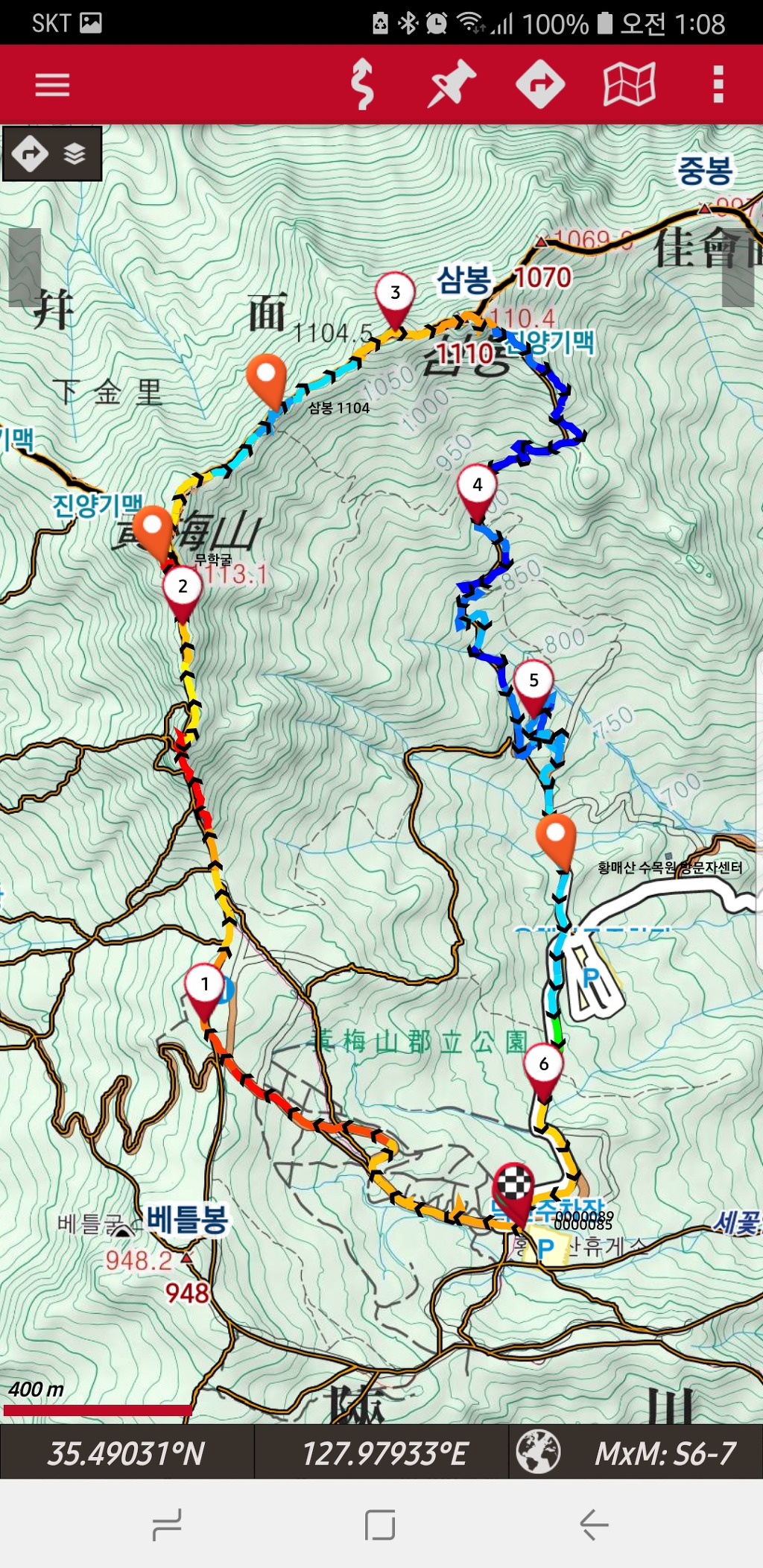 3. 산행코스 : 오토캠핑장-황매봉-무학굴-삼봉-상봉-수목원-오토캠핑장