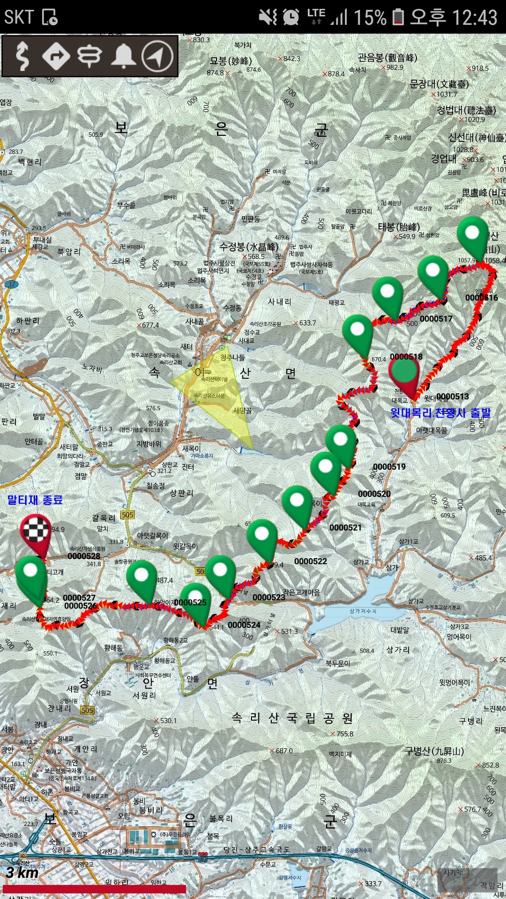 한남금북정맥 제1구간(대목리~속리산 천왕봉~갈목재~말티재) 산행
