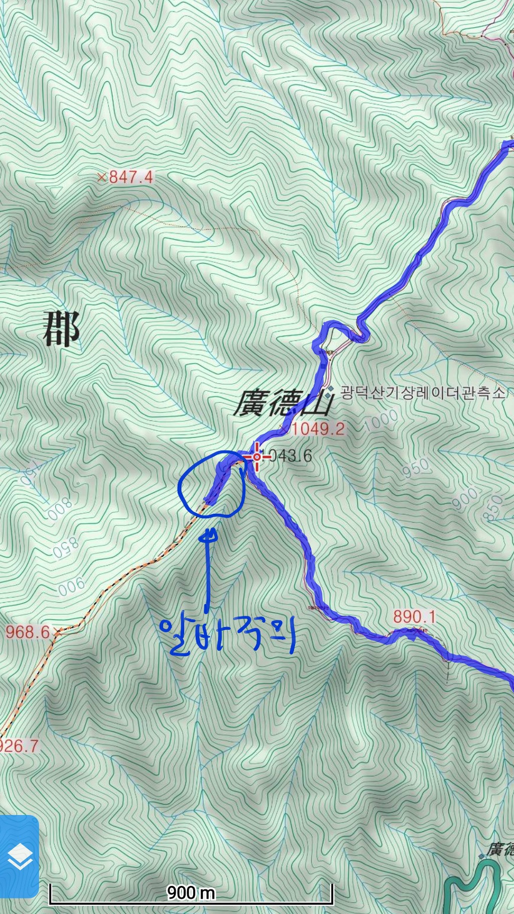 - 광덕산에서 아무 생각 없이 직진하다 알바 함; 좌틀하여야 함