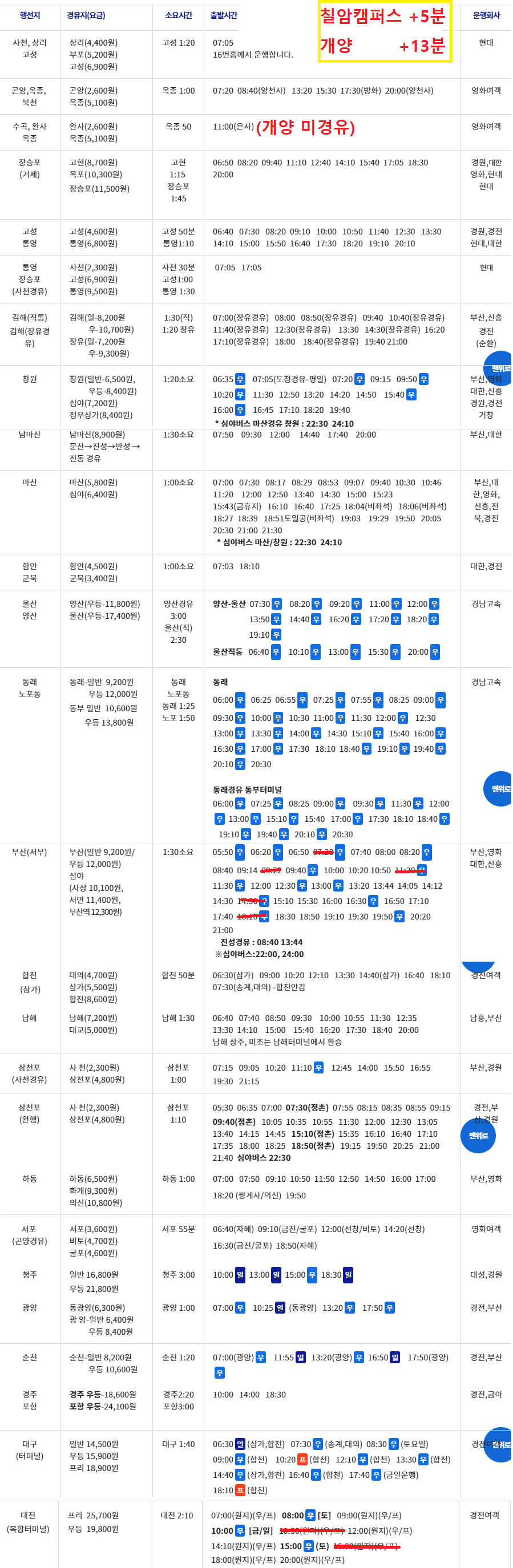 (경상대 칠암캠퍼스 시외버스 시간표)