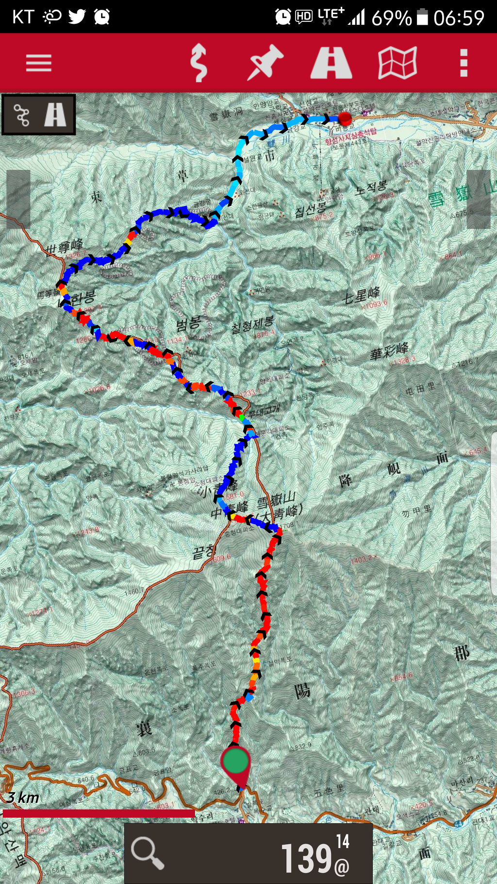 3. 산행코스 : 오색-대청봉-희운각대피소-공룡능선-마등령-비선대-소공원