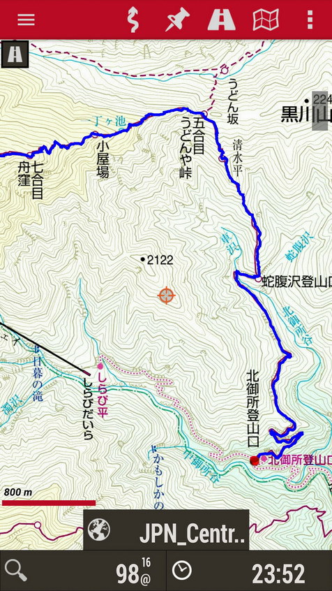 ▼ 출발지(北御所 :키타고쇼) 부근의 등산로와 기록된 트랙의 일치성 상태
