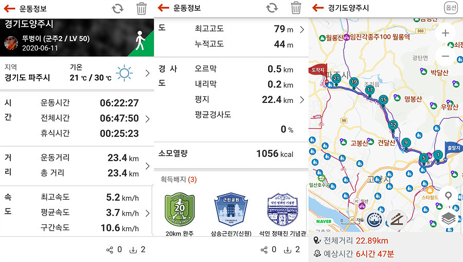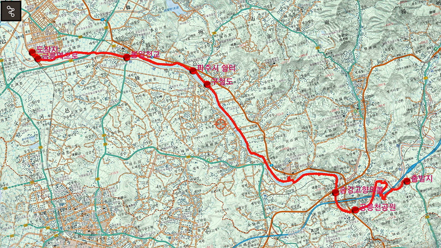 2020.06.11.목요일(맑음)(21℃/30℃) 걷기시작~~10시 20분 [장흥면 삼화리정류소 걷기시작] 걷기마침~~17시 04분 [파주시 금릉역 걷기마침] 산행시간~~06시간44분[이동거리 총22.77km()[함께한사람=뚜벅이 뚜심이 대중교통]교통 갈때:태평역~수서역(3호선)~지축역(1번출구)~052번버스 삼화리정류소 올때:공릉역(경의선)~왕십리역~태평역제 1562회아래 지도을 클릭하시면 크게 확인할수 있습니다.
