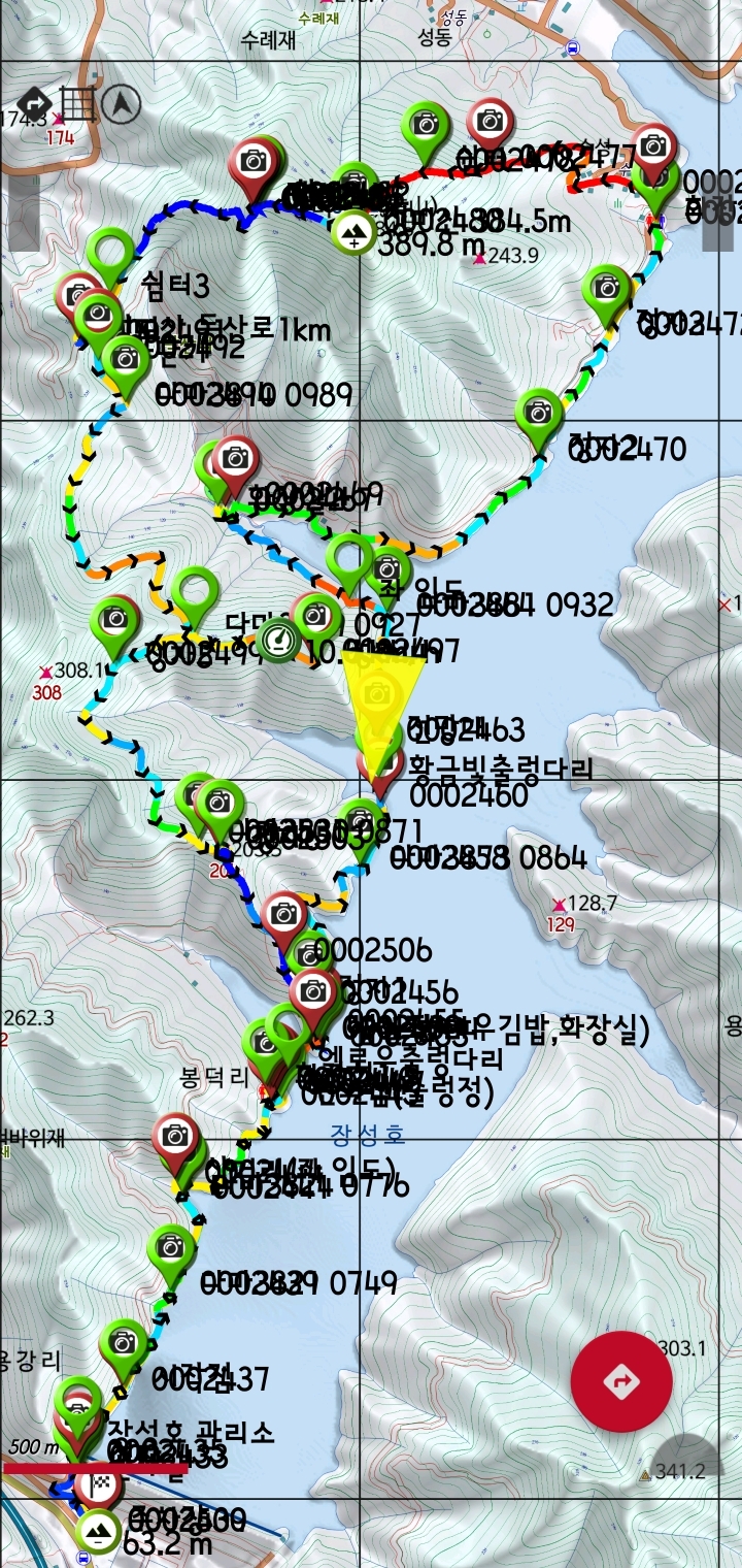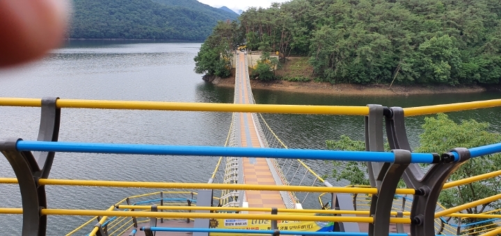 6. 산행참고 : 장성호를 따라 데크 잘 되어 있음(나무 그늘), 엘로우출렁다리 넘실정에서 아이스커피 한 잔의 여유로움도~~