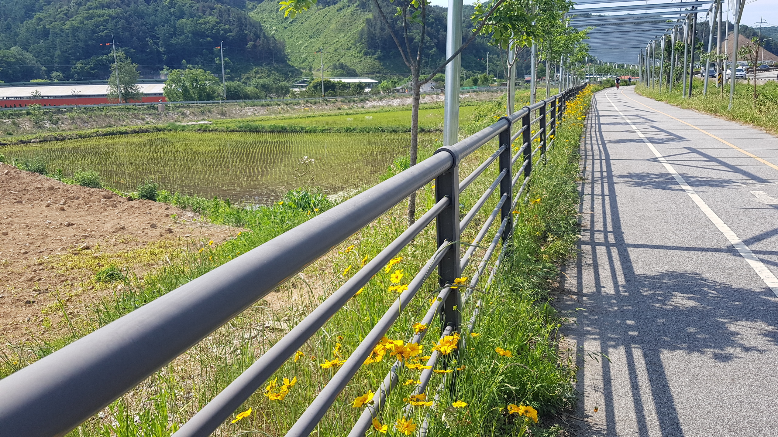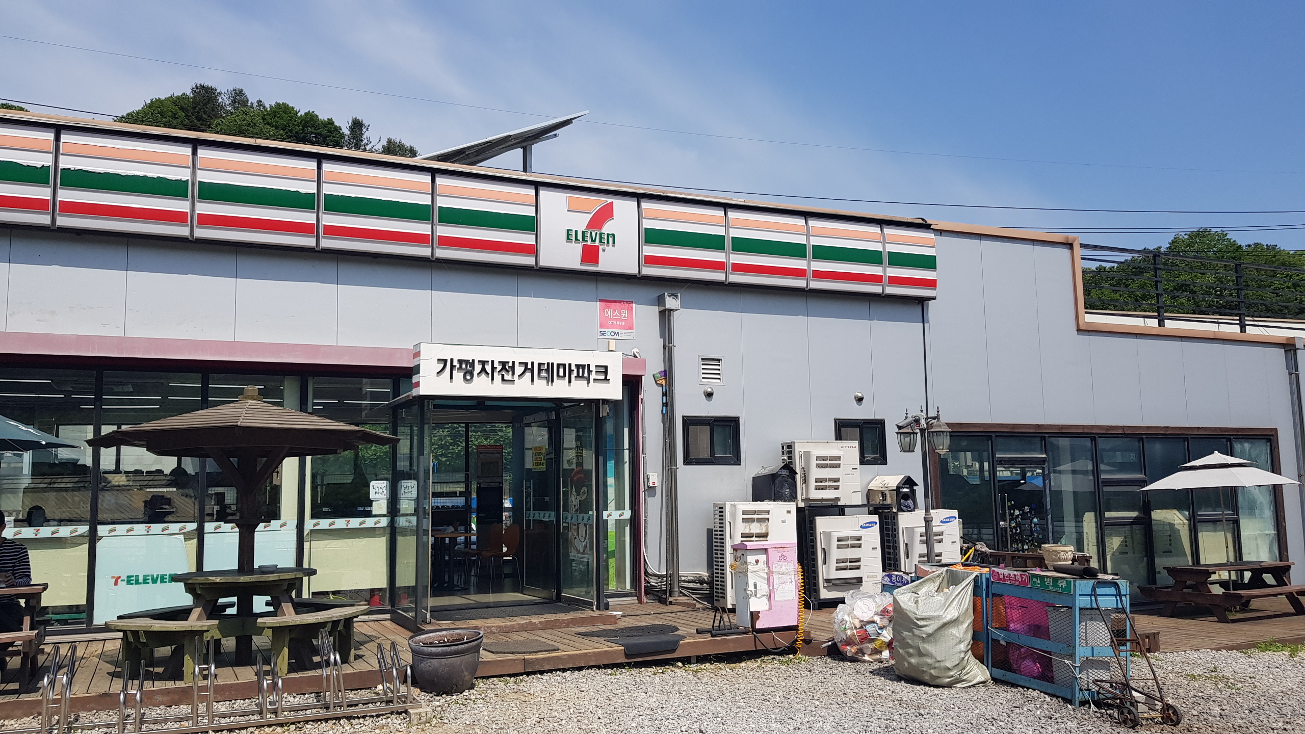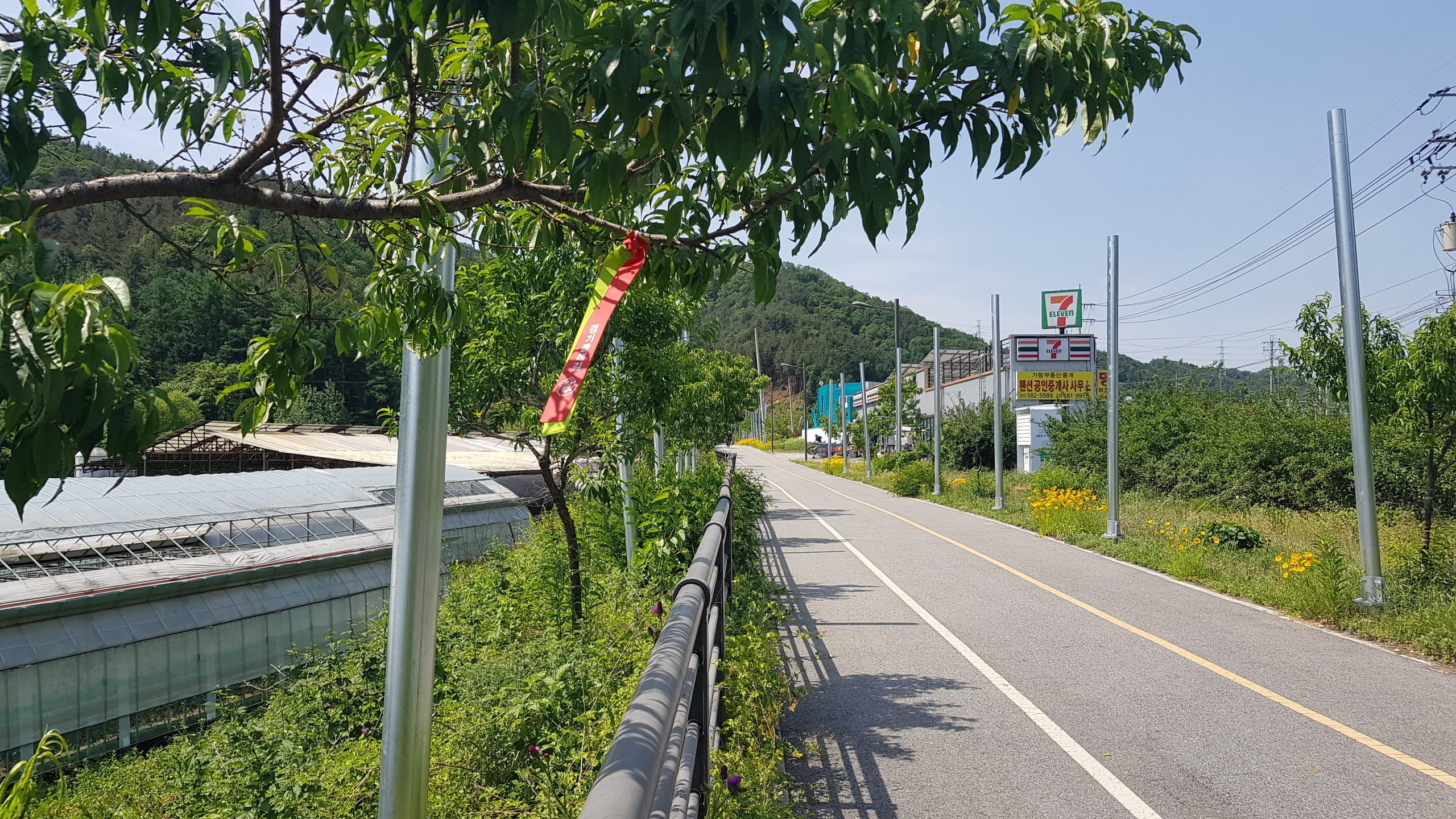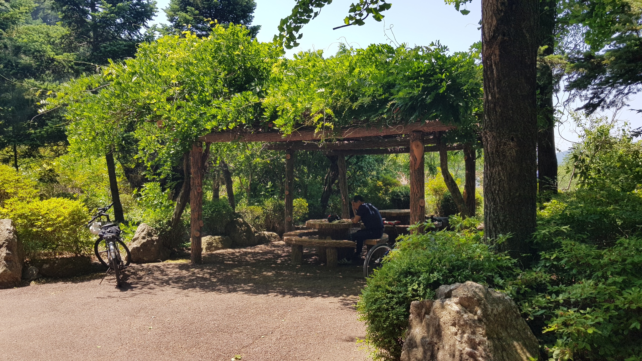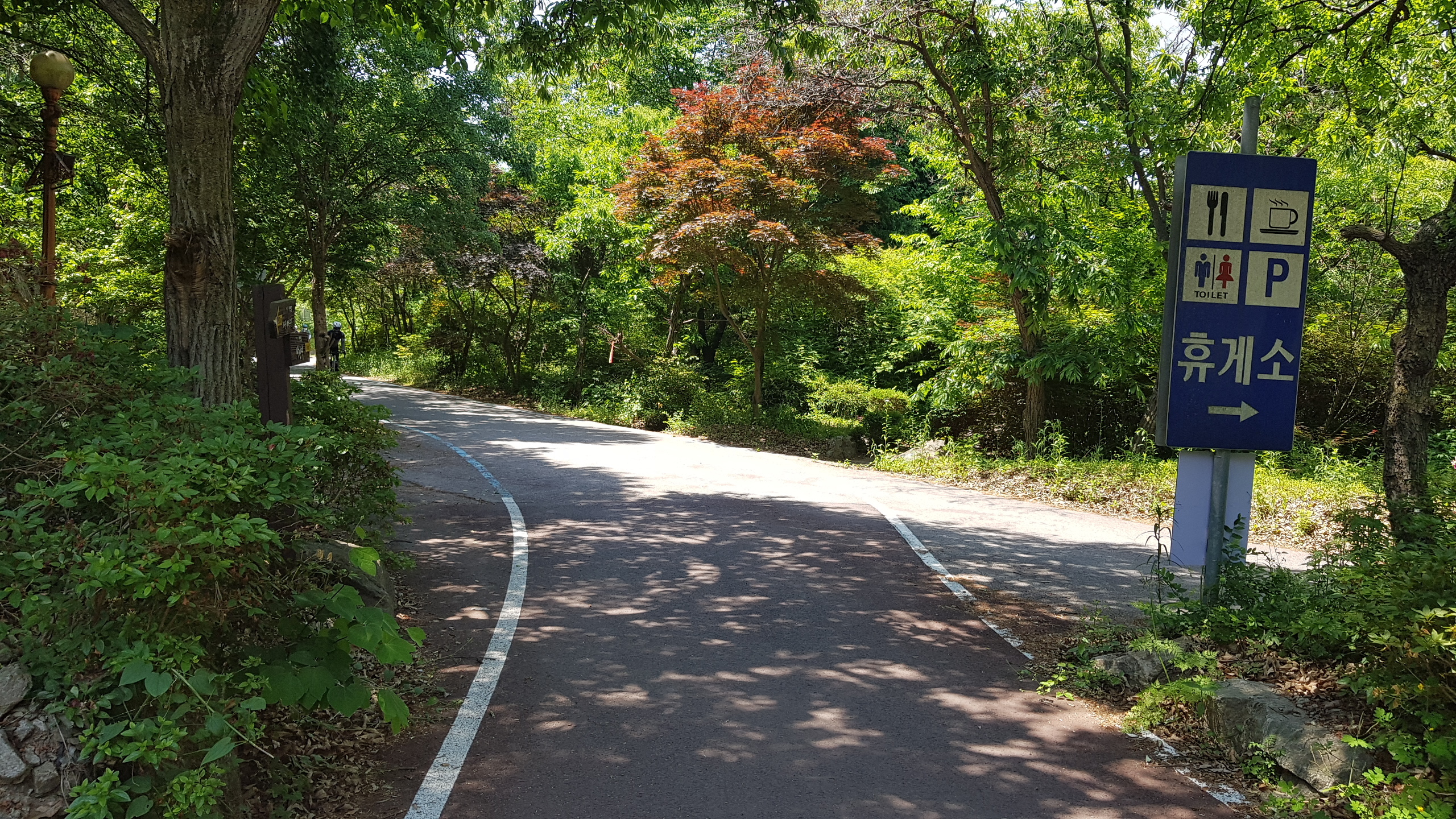 계속 북한강 자전거길을 따라 진행 하색교를 건너고 상천역 5.9km지점을 지나 세븐일레븐 편의점도 지나(가평자전거테마파크) 상천역 5.1km 지점에 도착하면 사각정자가 있는 쉼터를 만나 휴식을 취한다.